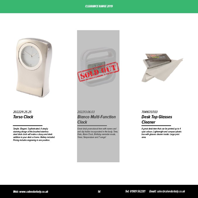 Tel: 01989 562281 Email: sales@calendarlady.co.uk