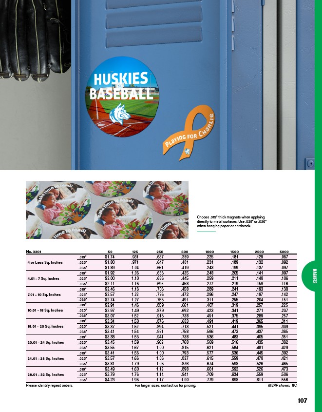 Please identify repeat orders. For larger sizes, contact us for pricing. MSRP shown. 8C