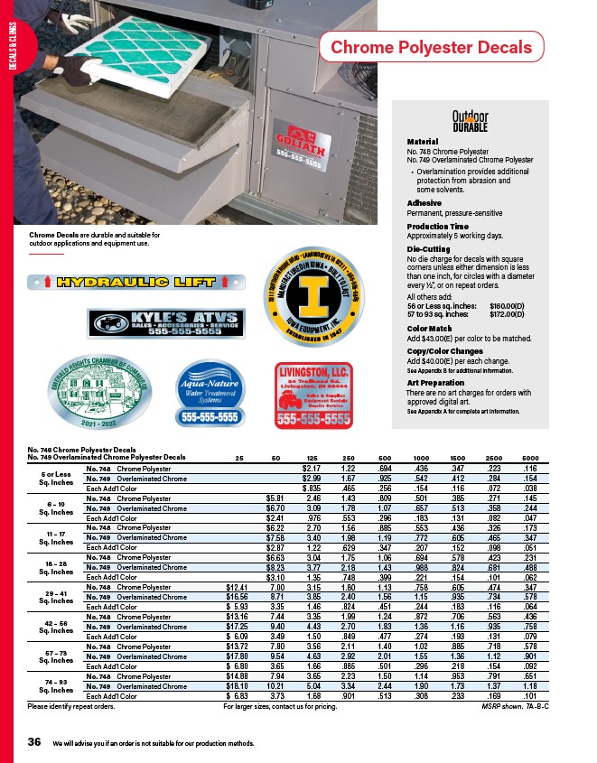 No. 749 Overlaminated Chrome Polyester Decals 25 50 125 250 500 1000 1500 2500 5000