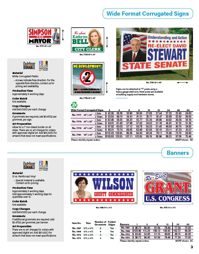 Wide Format Corrugated Signs 2 4 6 8 10 12 24 36 50