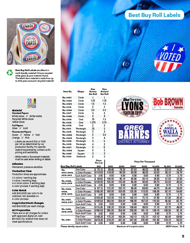Best Buy Roll Labels 500 1000 2000 3000 5000 10,000 15,000 25,000
