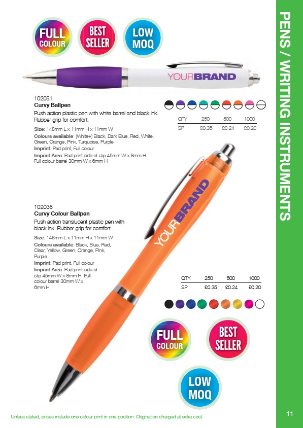 Unless stated, prices include one colour print in one position. Origination charged at extra cost. 11