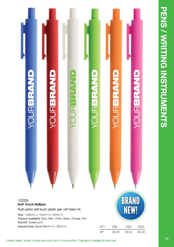 Unless stated, prices include one colour print in one position. Origination charged at extra cost. 15