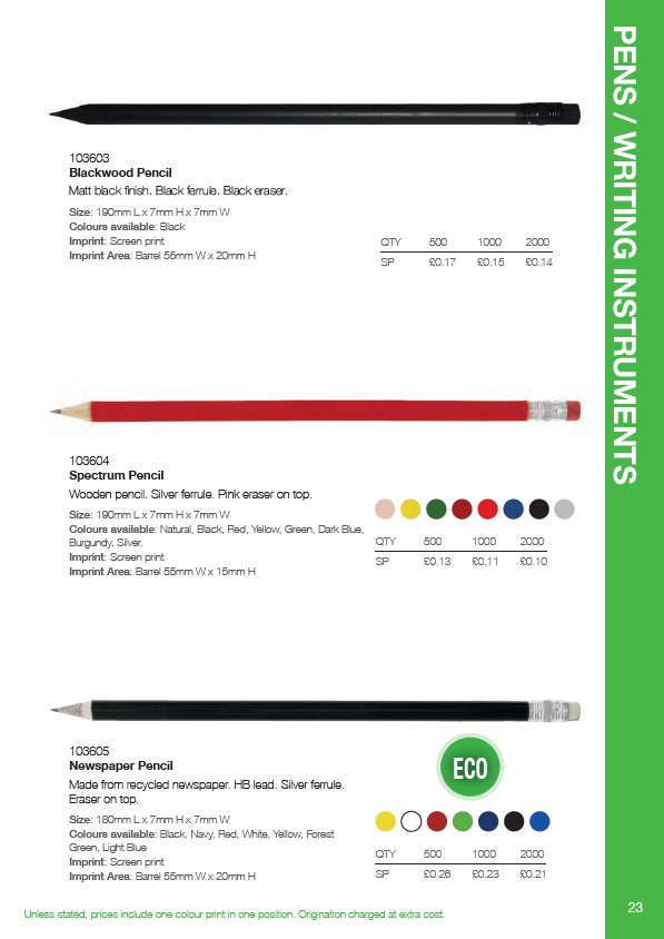 Unless stated, prices include one colour print in one position. Origination charged at extra cost. 23