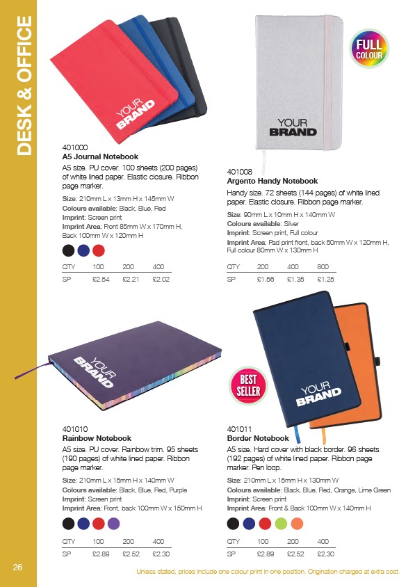 DESK & OFFICE Unless stated, prices include one colour print in one position. Origination charged at extra cost. 26