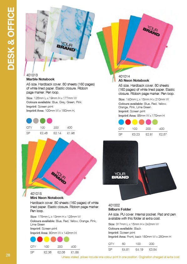 DESK & OFFICE Unless stated, prices include one colour print in one position. Origination charged at extra cost. 28