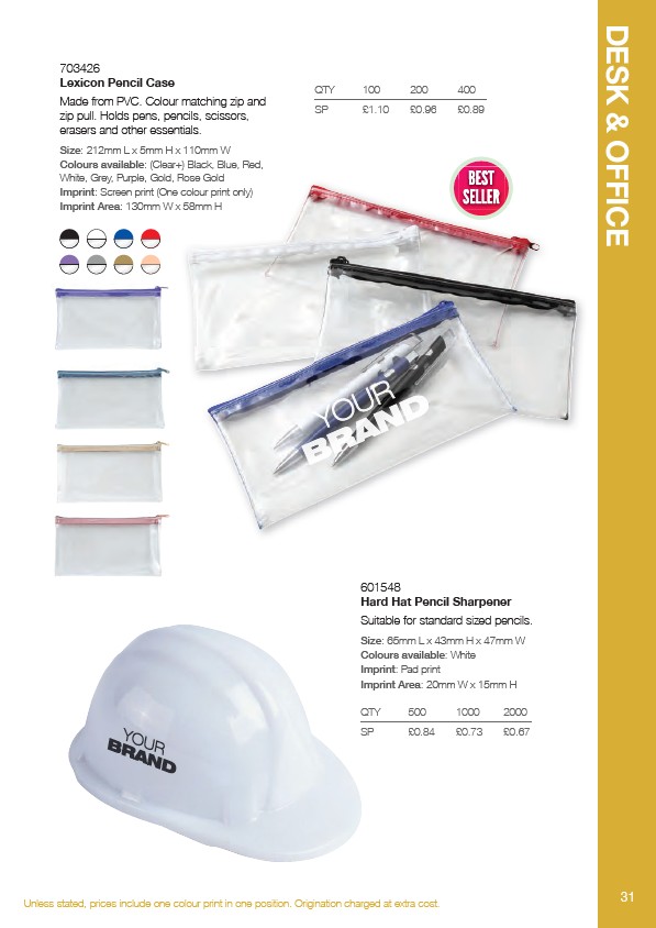 Unless stated, prices include one colour print in one position. Origination charged at extra cost. 31