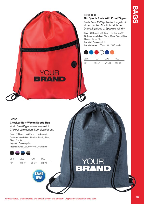 Unless stated, prices include one colour print in one position. Origination charged at extra cost. 37
