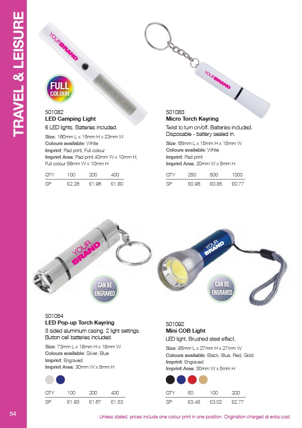 Unless stated, prices include one colour print in one position. Origination charged at extra cost.
