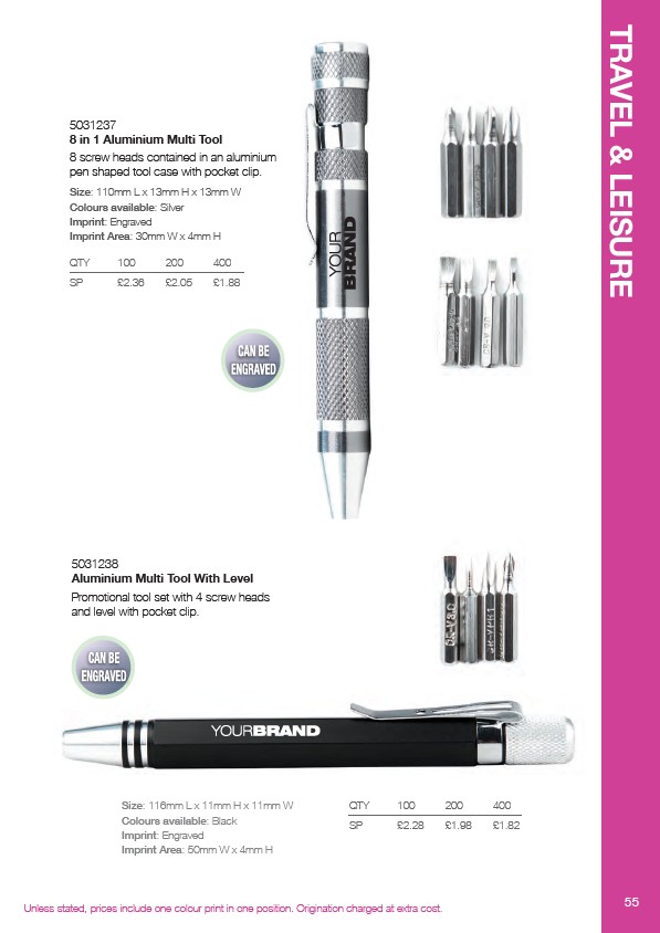 Unless stated, prices include one colour print in one position. Origination charged at extra cost. 55