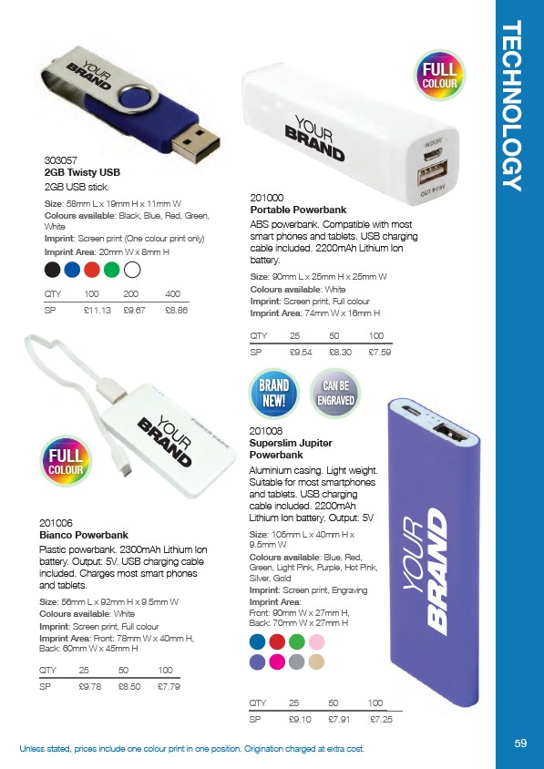 Unless stated, prices include one colour print in one position. Origination charged at extra cost. 59