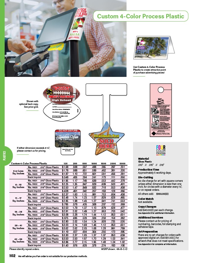 Custom 4-Color Process Plastic 125 250 500 1000 1500 2500 5000