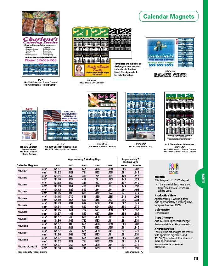 Calendar Magnets 125 250 500 1000 2500 5000 10,000