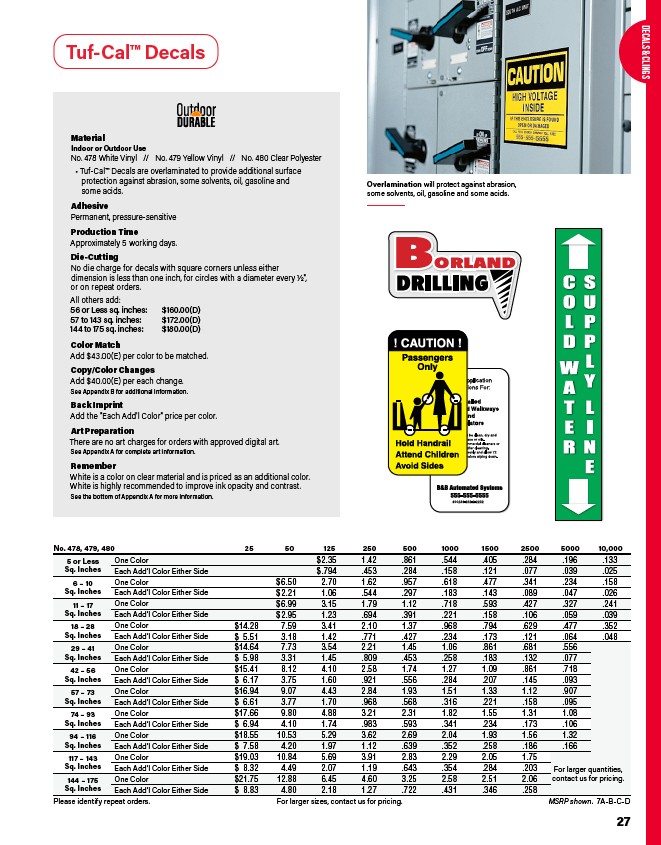 • Tuf-Cal™ Decals are overlaminated to provide additional surface
