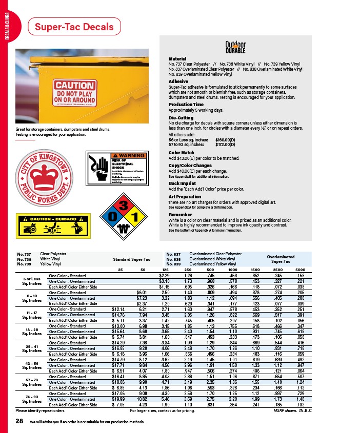 One Color - Overlaminated $3.10 1.73 .968 .578 .453 .327 .221