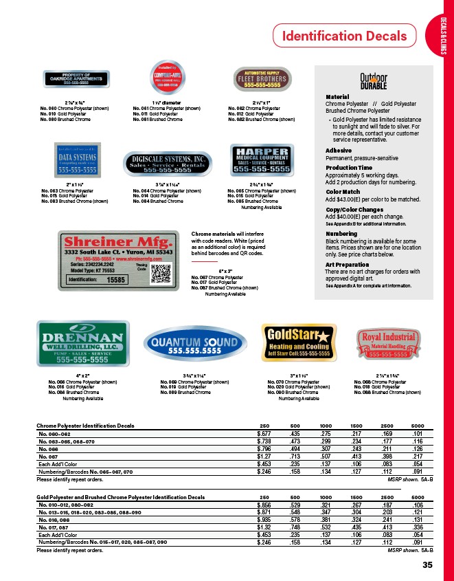 Chrome Polyester Identification Decals 250 500 1000 1500 2500 5000