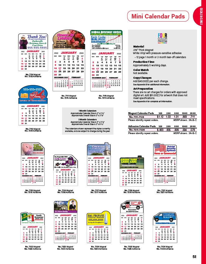 Adhesive Calendar Pads 125 250 500 1000 2500