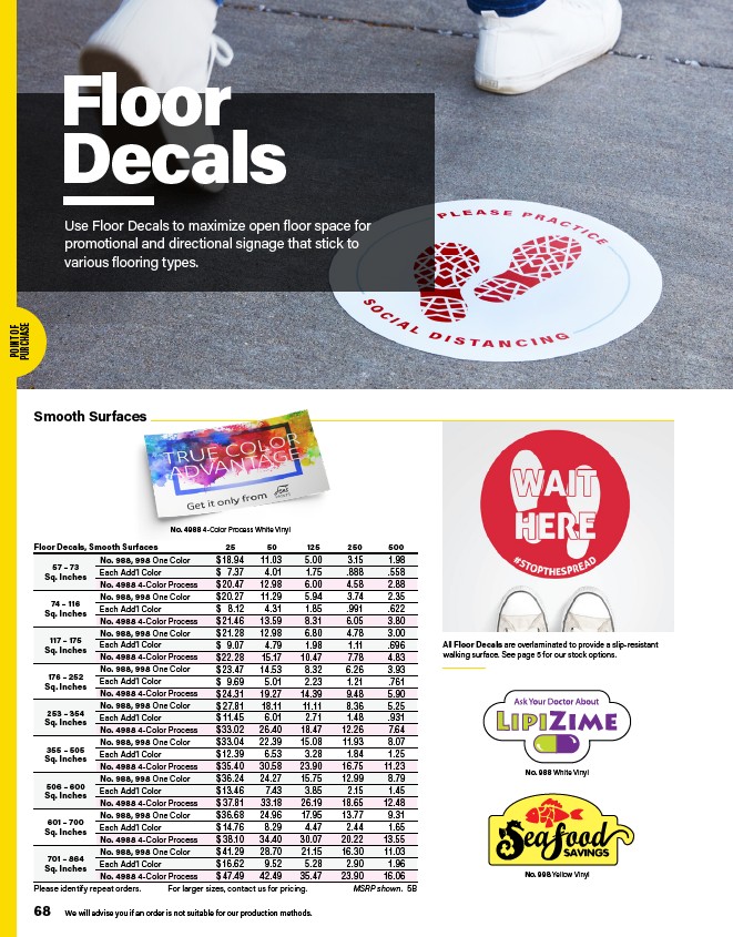 Floor Decals, Smooth Surfaces 25 50 125 250 500