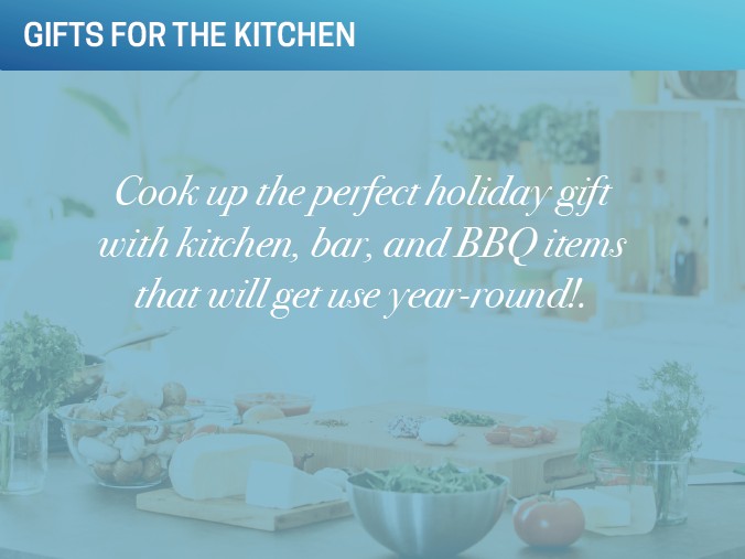 GIFTS FOR THE KITCHEN Cook up the perfect holiday gift with kitchen, bar, and BBQ items that will get use year-round!.