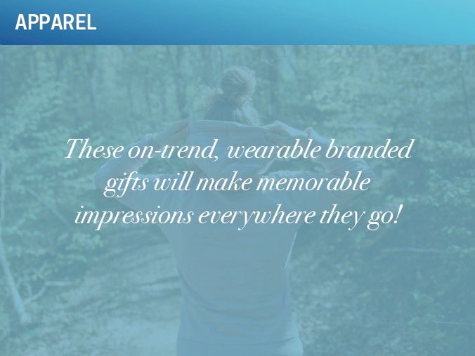 APPAREL These on-trend, wearable branded gifts will make memorable impressions everywhere they go!