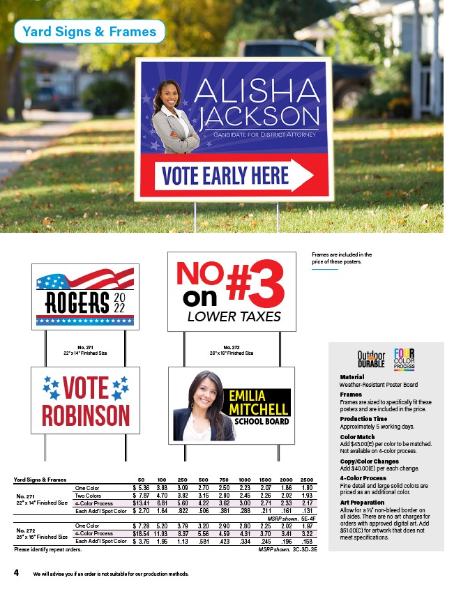 Yard Signs & Frames 50 100 250 500 750 1000 1500 2000 2500