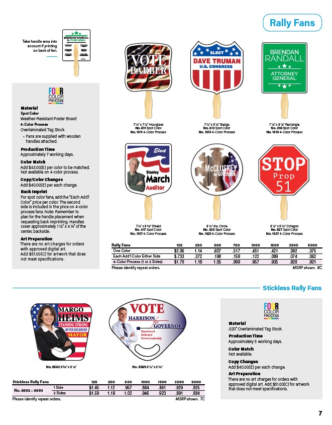 Stickless Rally Fans 125 250 500 1000 1500 2500 5000