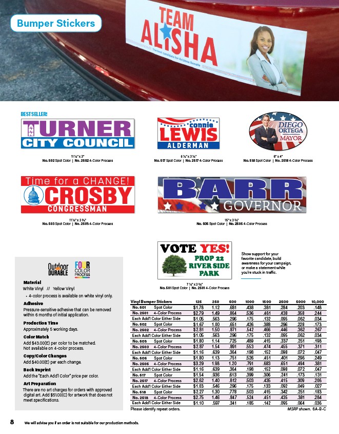 Vinyl Bumper Stickers 125 250 500 1000 1500 2500 5000 10,000