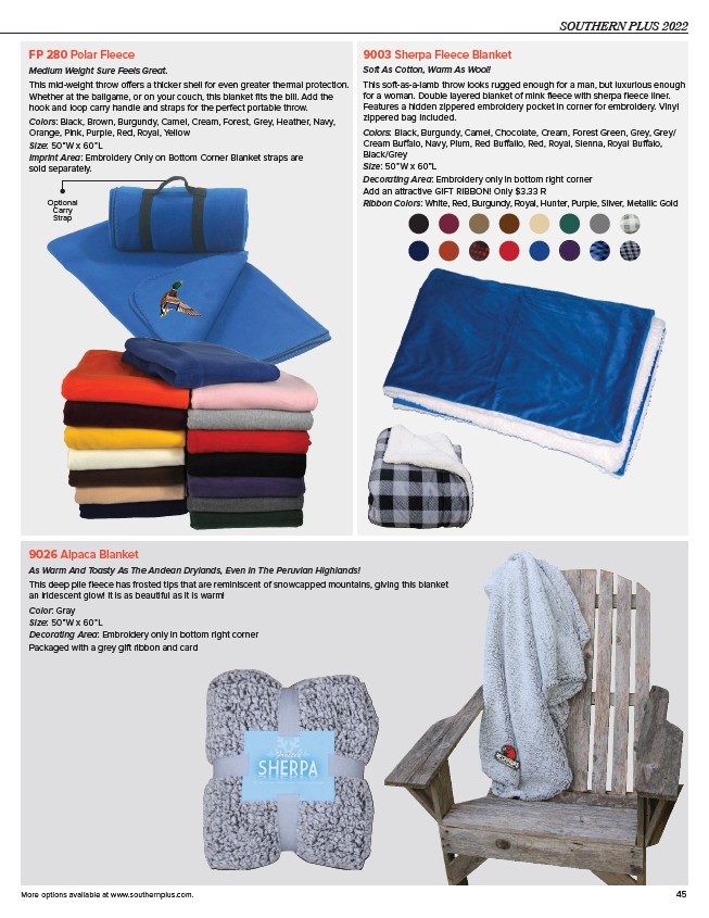 Imprint Area: Embroidery Only on Bottom Corner Blanket straps are