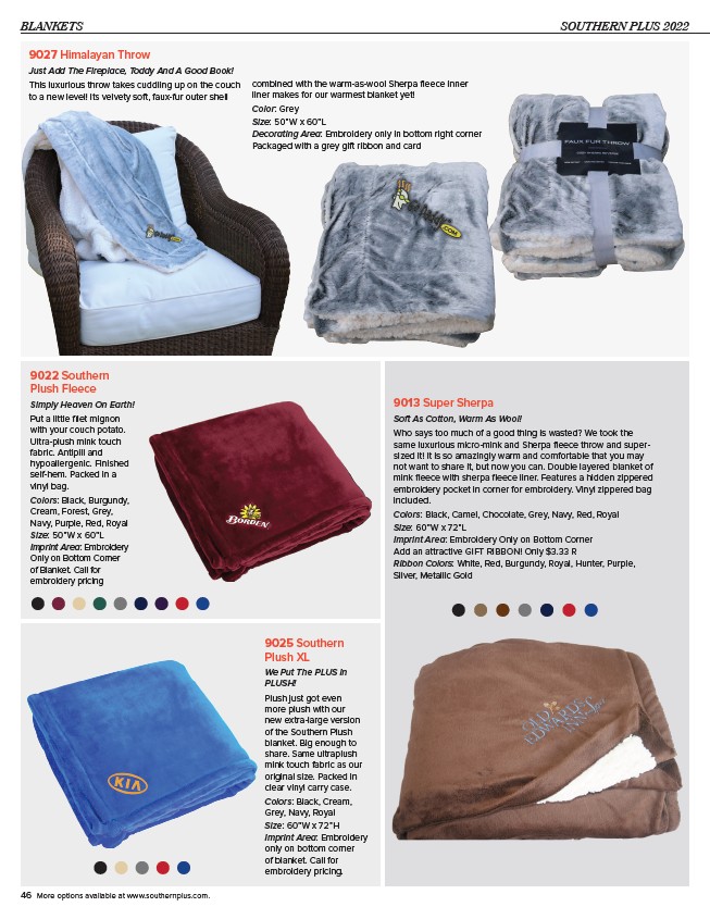 46 More options available at www.southernplus.com. Price includes 1 color imprint, 1 location. Additional imprint colors $0.75(v). Screen charge: $55(v). Repeat orders screen charge: $35(v).