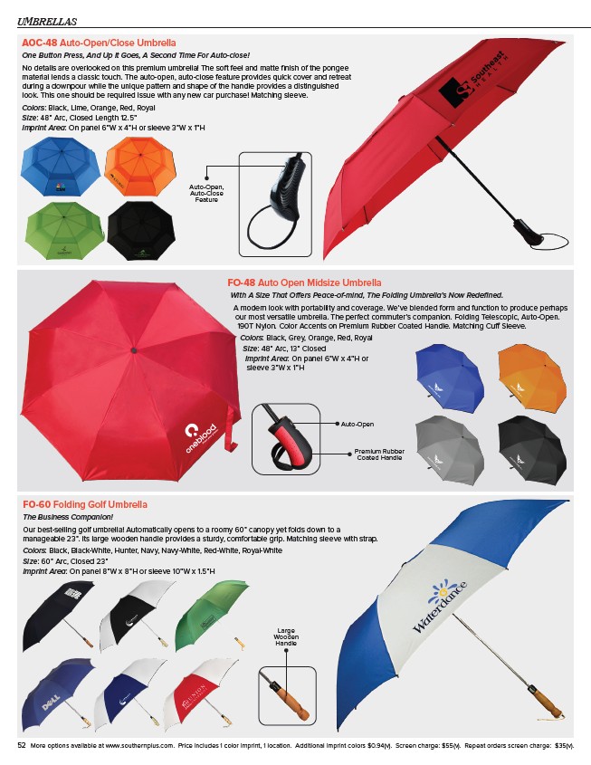 52 More options available at www.southernplus.com. Price includes 1 color imprint, 1 location. Additional imprint colors $0.94(v). Screen charge: $55(v). Repeat orders screen charge: $35(v).
