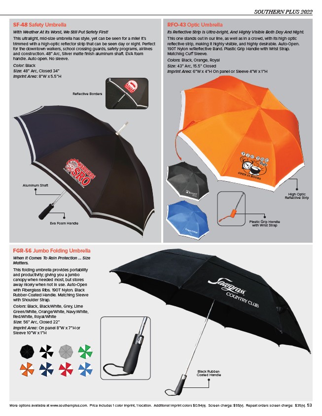 More options available at www.southernplus.com. Price includes 1 color imprint, 1 location. Additional imprint colors $0.94(v). Screen charge: $55(v). Repeat orders screen charge: $35(v). 53