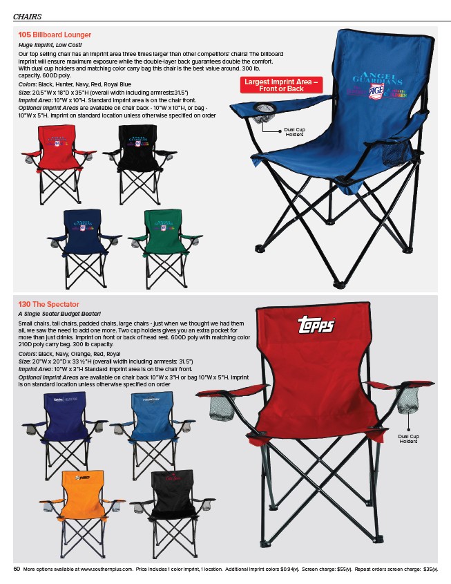 Our top selling chair has an imprint area three times larger than other competitors’ chairs! The billboard