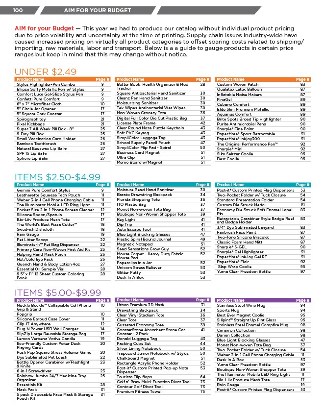 AIM for your Budget — This year we had to produce our catalog without individual product pricing