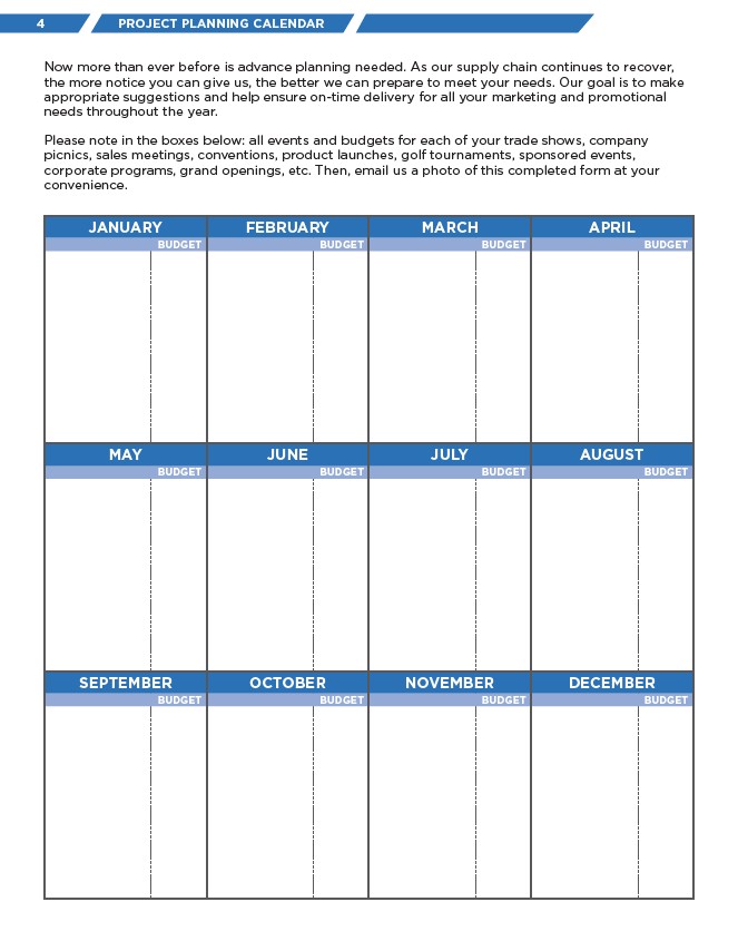 Please note in the boxes below: all events and budgets for each of your trade shows, company