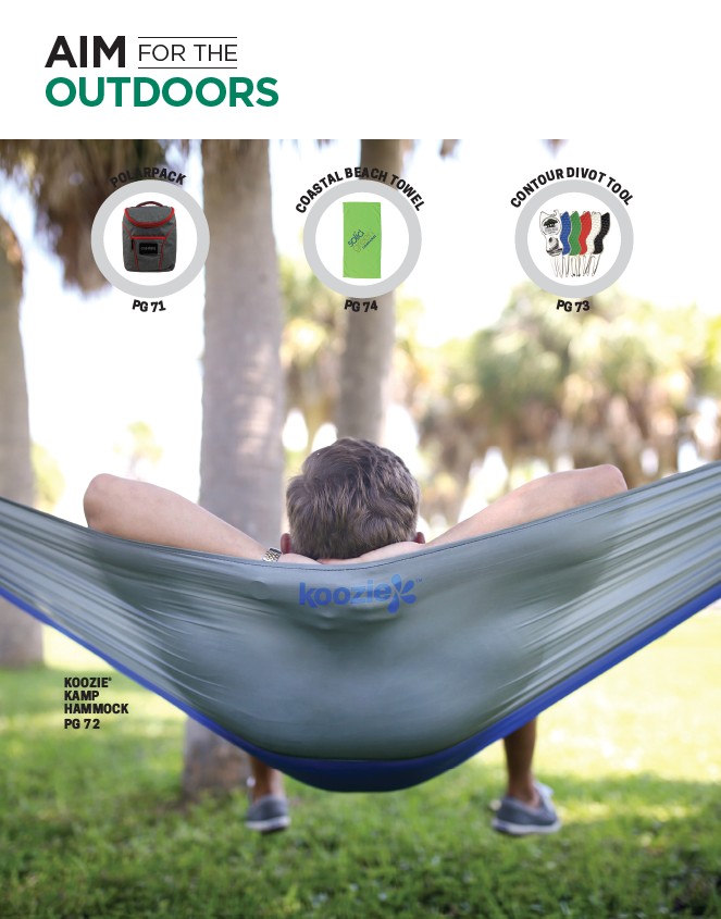 AIM FOR THE OUTDOORS POLARPACK PG 71 COASTAL BEACH TOWEL PG 74 CONTOUR DIVOT TOOL PG 73 KOOZIE® KAMP HAMMOCK PG 72