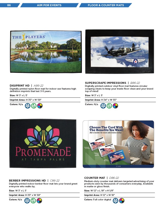 86 AIM FOR EVENTS FLOOR & COUNTER MATS